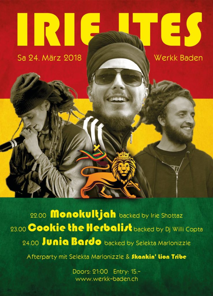 Before I am going to burn some fire in Zürich for „Legends In Action“ you can catch me at Werkk in Baden, Aargau for a nice Reggae Night called „Irie Ites“ (show around 10:30 pm!!) ! See you both places I’d say!